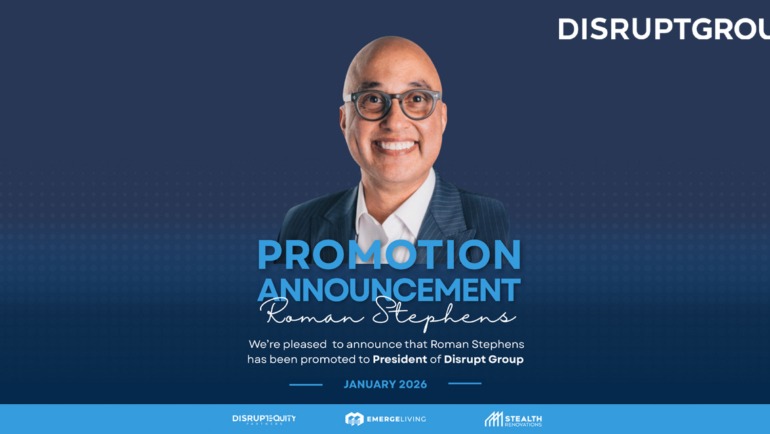 Disrupt Group, the parent company of Disrupt Equity, Emerge Living, and Stealth Renovations, today announced the promotion of Roman Stephens from Chief Operating Officer at Emerge Living to President of Disrupt Group. In this role, Stephens will oversee the firm’s operating platform and support continued growth and alignment across…